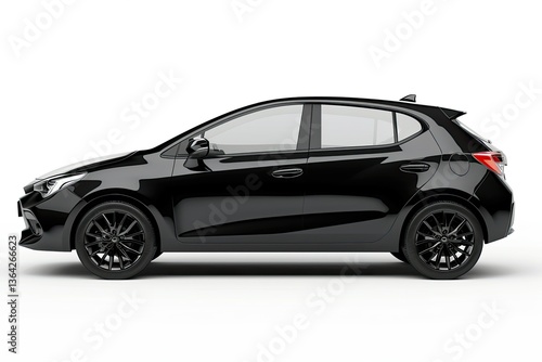 Side View of Black Hatchback Car Isolated on White Background with Clipping Path