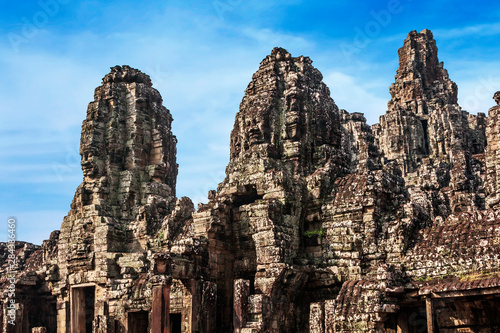 Siem Reap, Cambodia. Ancient ruins and towers of the Bayon Temple in Angkor Thom