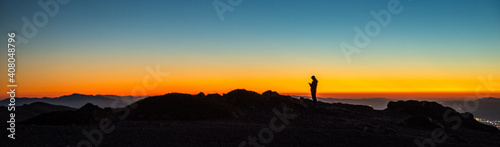 Sierra Nevada al atardecer con la vía Láctea y la virgen de las nieves