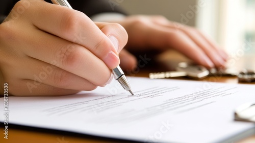 hand, pen, document, paper, signing, contract, agreements, business, office, desk, legal, signature, document, form, paperwork, key, real, estate, transaction, closeup, workspace, work, workplace, white, person, female, interior, design, professional, formal, financial, finance, deal, property, ownership, supply, writing, close, up