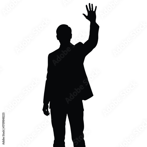 silhouette, businessman, waving, hand, greeting, welcome, adieu, business, communication, person, male, suit, formal, wear, vector, illustration, icon, minimalist, flat, design, clean, symbol, gesture, human, isolated, standing, professional, entrepreneur, ceo, manager, employee, company, meeting