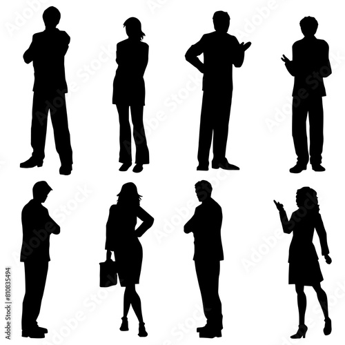 silhouette, man, male, guy, female, woman, girl, lady, fashionable, posh, pose, gesture, style, stylish, illustration, people, figure, person, character, human, collection, group, standing, walk, walking, business, businesswoman, businessman