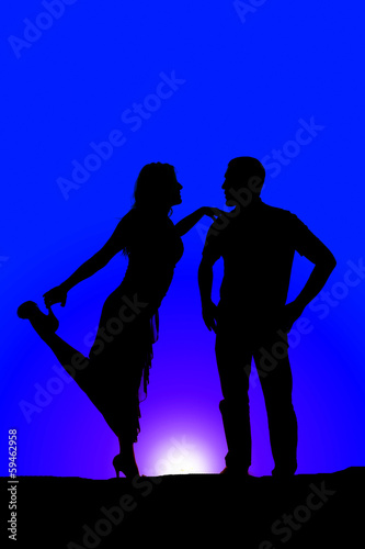 silhouette couple woman touch shoe