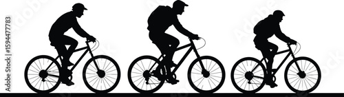 Silhouette Cyclists Riding Bicycles on White Background