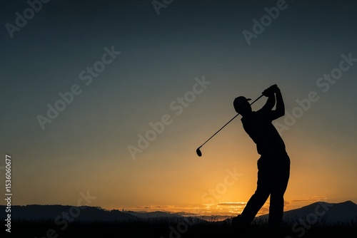 Silhouette Golfer Sunset Dramatic Sky Professional Golf Player Action Sport Outdoors Summer Evening Golden Hour Athletic Strong Powerful Dynamic Energy Drive Swinging Club Fairway