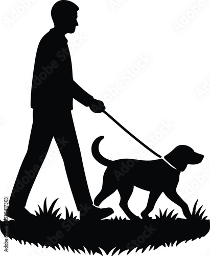 silhouette, man, dog, walk, pet, animal, leash, grass, vector, illustration, design, art, graphic, simple, black, walking, domestic, canino, mammal, lifestyle, outdoors, companion, minimalist