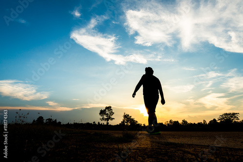 athlete, background, black, blue, cloud, evening, exercise, fit, fitness, health, healthy, jogger, jogging, lonely, man, marathon, motion, nature, orange, people, person, race, run, runner, running, silhouette, sky, sport, sprinter, sunrise, sunset, training, walk, walking