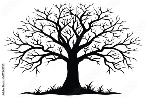silhouette, tree, vector, illustration, nature, trunk, grass, landscape, plant, graphic, design, outline, monochrome, black, ecology, symbol, autumn, winter, dead, drawing, timberland, forest, park, vegetation, isolated, icon, signs, environment, artwork, artistic, clip art, image, background, leafless, barren, scenic, decorative, element, seasonal, botanical