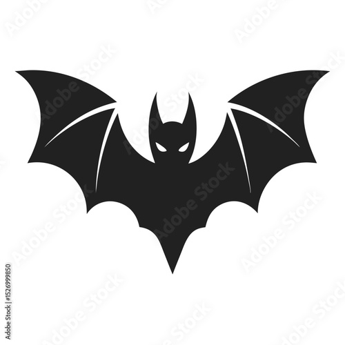 Silhouette of a Black Bat with Wings Spread on a White Background Halloween Illustration