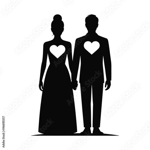 bride, groom, wedding, couple, love, romance, marriage, heart, silhouette, black, white, simple, minimal, elegant, classic, design, illustration, vector, graphic, art, symbol, icon, engagement, married, together, forever, happy, celebration, human relationships, commitment, wedding day, romantic