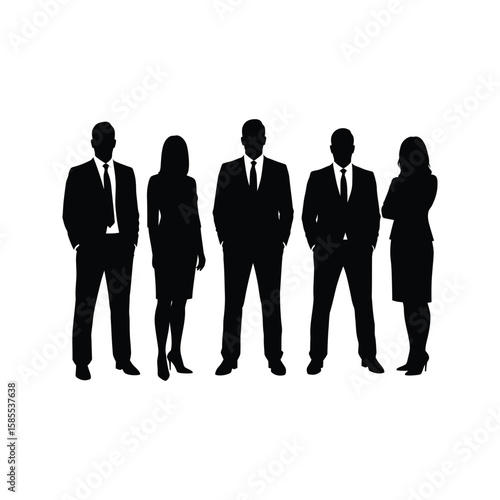 business, team, professional, man, woman, suit, standing, together, silhouette, black, white, background, corporate, group, leadership, management, success, strategy, collaboration, partnership, work, office, employee, colleague, people, portrait, illustration, graphic, vector, design, icon, symbol, clip art, marketing, sale, finance, career, job, employment, executive, powerful, confident, competent, stylish