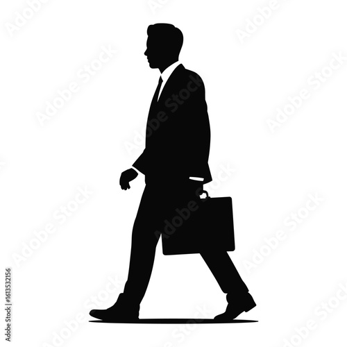 businessman, silhouette, walking, briefcase, suit, attaching, professional, career, business, corporate, man, male, figure, isolated, white background, half face, movement, commute, work, office, success, ambition, goal, determination, executive, leader, confident