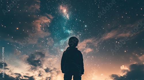 Silhouette of a Child Gazing at a Starry Night Sky
