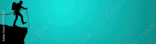 Silhouette of a Climber on a Mountain Edge with a Vibrant Teal Background Representing Adventure and Outdoor Exploration in Nature
