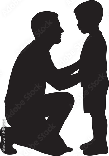 silhouette, father, son, family, eltern, children, love, support, comfort, kneeling, affection, care, togetherness, human relationships, fatherhood, parenthood, boy, man, minimalist, vector, illustration, graphic, design, black, white, simple, parenting, childhood, fathers day, human, people, bonding, tenderness, family time, comforting, gently