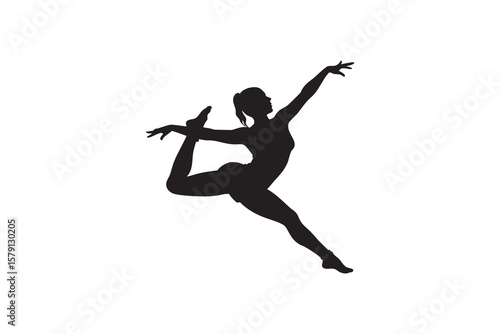 silhouette, dancer, dance, female, woman, gymnastics, gymnast, pose, flexible, flexibility, strength, artistic, expression, movement, motion, performance, isolated, white background, black, figure, body, sport, exercise, fitness, athletic, athlete, balance, graceful, elegance, aerobic, training, physical exercise, active, lifestyle, health, well-being, modern dance, rhythmic, art, design, illustration, vector, clip art, icon, symbol, shape, outline, jumping