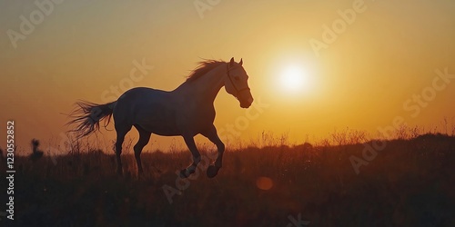 horse, silhouette, galloping, sunset, nature, wild, freedom, animal, majestic, countryside, dusk, golden hour, equine, running, powerful, scenic, peaceful, rural, landscape, beauty, motion, twilight, serene, sunrise, warm colors, wilderness, graceful, adventure, western, farm, spirit, strength, natural, elegant, endurance, untamed, inspiring, horizon, picturesque, calmness