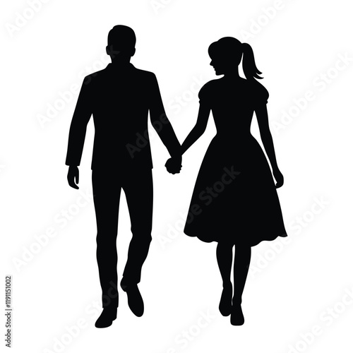silhouette of a happy valentine's day couple walking hand in hand