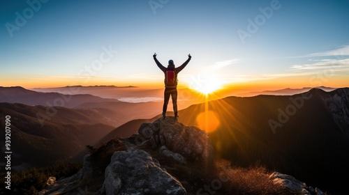 hiker, mountain, sunrise, silhouette, success, achievement, motivation, inspiration, peak, landscape, nature, adventure, travel, freedom, sky, cloud, sun, morning, view, scenic, summit, hiking, trekking, climbing, wilderness, explore, journey, destination, goal, happy, active, lifestyle, healthy, man, person
