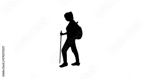 silhouette, hiker, walking, trekking, pole, backpack, white, background, serenity, profile, excitement, escape, peace, exploration, calmness, discovery, graphic, figure, anticipation, person, joy, shadow, movement, form, relaxation, trek, fun, freedom, fitness, recreation, sport, climb, explorer, side, shape, illustration, element, symbol, calm, motion, healthy, lifestyle, black, design, leisure, scenic, activity, icon, nature