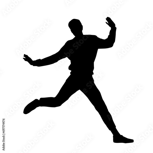 Silhouette of a male dancer in action pose. Silhouette of a slim man in dancing pose.