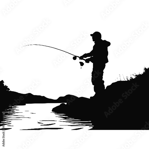 sport, fishing, illustration, water, people, fisherman, nature, vector, fish, casting, lake, outdoors, river, sea, horizon, hunter, lifestyle, monochrome, one person, relaxation, vacation, hat, motion, duck pond, sunlight, art, collection, fresh water, fun, morning, adult, equipment, fishing pole, avocation, pine tree, recreational pursuit, sunset, tranquil scene, adults only, orange color, summer, travel, fishing gear