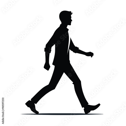 silhouette, man, walking, brisk, motion, movement, male, active, commuter, casual attire, walk, step, person, human, black, white, side, view, simple, outline, everyday, lifestyle, confident, city, urban, business, exercise, stride, outdoors, professional