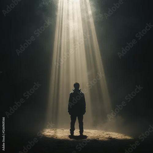 silhouette of a man walking in the fog