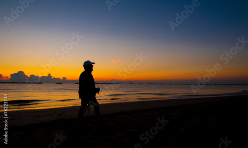 silhouette of a man walking on the sea