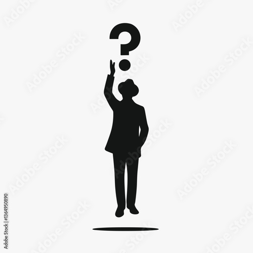 Silhouette of a Mystery Figure with Question Mark - Minimalist Black and White Illustration