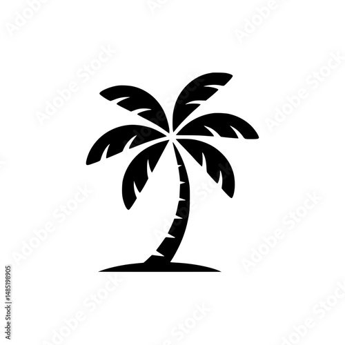 palm, tree, silhouette, tropical, nature, plant, frond, curved, trunk, black, icon, symbol, summer, beach, exotic, foliage, leaf, simple, graphic, isolated, design, illustration, vacation, botanical, flora, outline, shadow