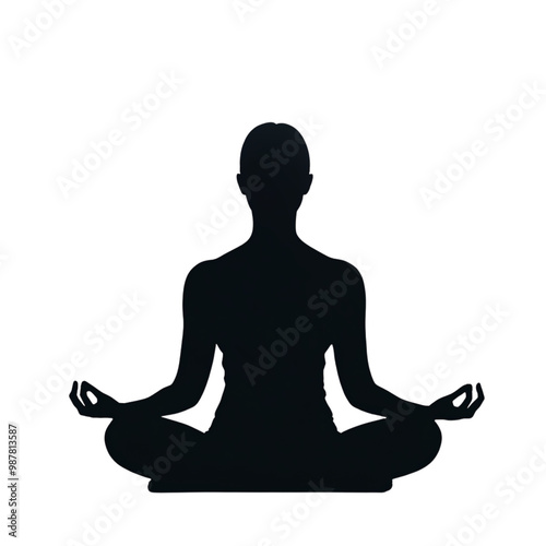 Silhouette of a person meditating in a peaceful pose, white isolate background. transparent background