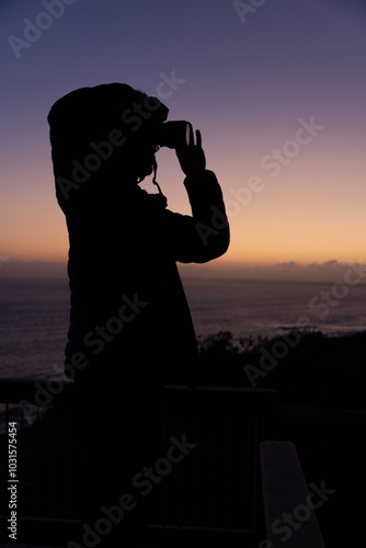 silhouette, photographer, sunset, ocean view, horizon, purple sky, dusk, scenic, coastline, peaceful, evening, nature, beach, serene, creative, tranquil, twilight, orange sky, camera, artistic, creativity, ocean, purple, sky, dark, person, bluff, peninsula, victoria, australia, teenage, one person, male, white