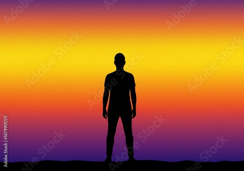 Silhouette of a Person Standing Against a Vibrant Sunset A Serene and Contemplative Image