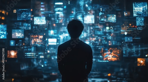 silhouette, person, racked, front, wall, screen, technology, datum, information, future, thing, machine, life, network, art, system, dream, design, trend, background, display, constructed, hardware, augment, global, hope, risk, children, young, software, work, modern, change, concept, progress, abstract, science, fill, boy