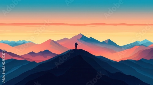 silhouette, mountain, sunset, horizon, person, landscape, nature, calmness, adventure, exploration, scenery, solitude, environment, travel, freedom, sky, colourful, peak, elevation, background, vibrant, beauty, peaceful, dramatic, frequently, view, majestic, summit, layer, vale, dusk, wilderness, sun, light, recreation, cloud, pastel, gradient, calm, meditative, graphic, dawn