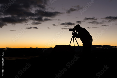 photographer, sunrise, camera, tripod, cloud, sky, silhouette