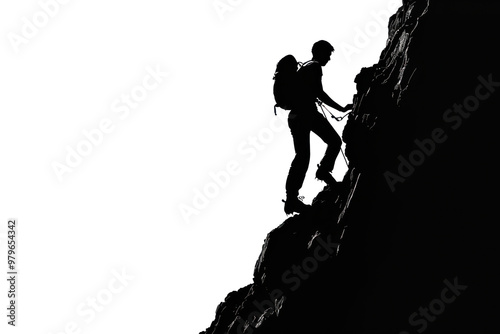 Silhouette of a rock climber scaling a steep cliff, extreme outdoor adventure, isolated on transparent backgroun