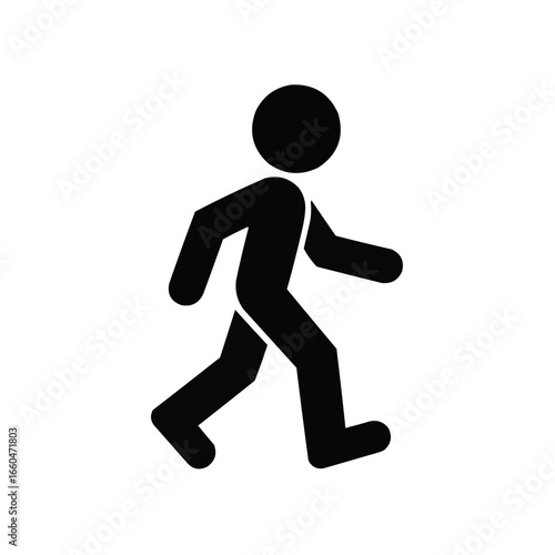 Silhouette of a simple stick figure pedestrian walking in a forward direction on a white background on transparent background