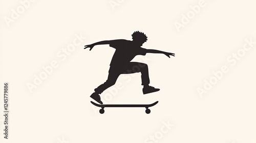 Silhouette of a skateboarder performing an ollie against a plain background, showcasing athleticism