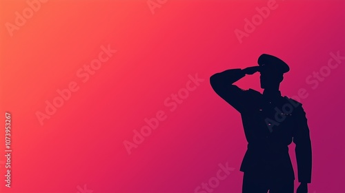 Silhouette of a soldier saluting against a gradient background representing respect, military service, and patriotism.
