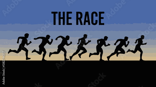 runner, silhouette, sprint, competition, athlete, motion, exercise, fitness, sport, activity, silhouette, movement, team, run, jogging, dynamic, training, race, background, colourful, illustration, graphic, artwork, design, word, motivational, cardio, endurance, speed, leisure, jumping, gym, running shoe, sunset, dusk, vector, image, energetic, perspective, challenge, healthy lifestyle, physical fitness, determination