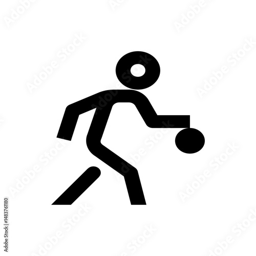 Silhouette of a stick figure dribbling a basketball with a simple black and white color scheme design style