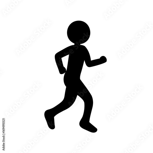 Silhouette of a stick figure running or jogging on a white background