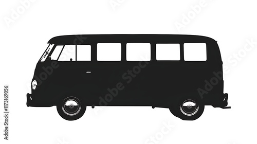 Silhouette of a van with side windows on a white background