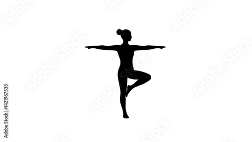 Silhouette of a Woman Practicing Yoga Tree Pose Vector Graphic