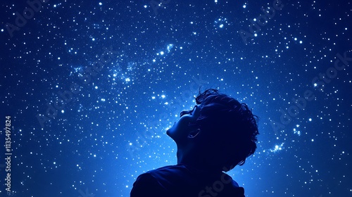 silhouette, night, star, sky, blue, dark, person, young, children, teenage, youth, looking, gazing, up, dreaming, wonder, imagination, space, universe, cosmic, astronomy, hope, optimism, mystery, night time, galaxy, twinkling, bright, beautiful, magical, fantasy, peaceful, serene, calm, soft, gentle, inspiration