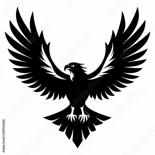 "Silhouette of an eagle soaring with wings spread wide, black-and-white.", Adobe Illustrator Artwork