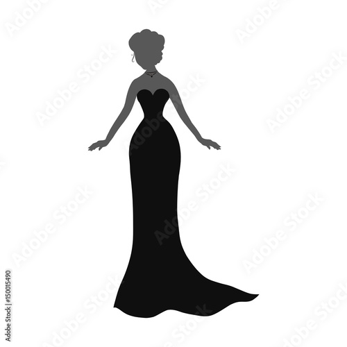 Silhouette of an elegant lady in a long black evening dress