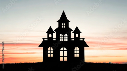 Silhouette of an Enchanting Castle Against a Colorful Sunset Sky